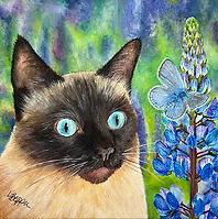 Siamese Cat, Lupine Flowers and Karmer Blue Butterfly